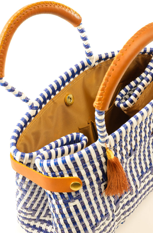 Lola Bucket Bag - Royal Blue Weave with Tan Handle