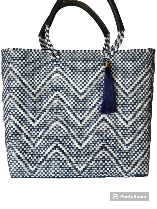 Lola Medium Bag - Blue & Double White