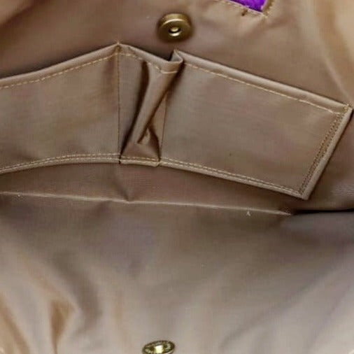 Our clutch is simple and stylish,  featuring a magnetic closure and two pockets.  Our products come fully fabric lined.  * Charms on clutches may vary, tassel color may vary.