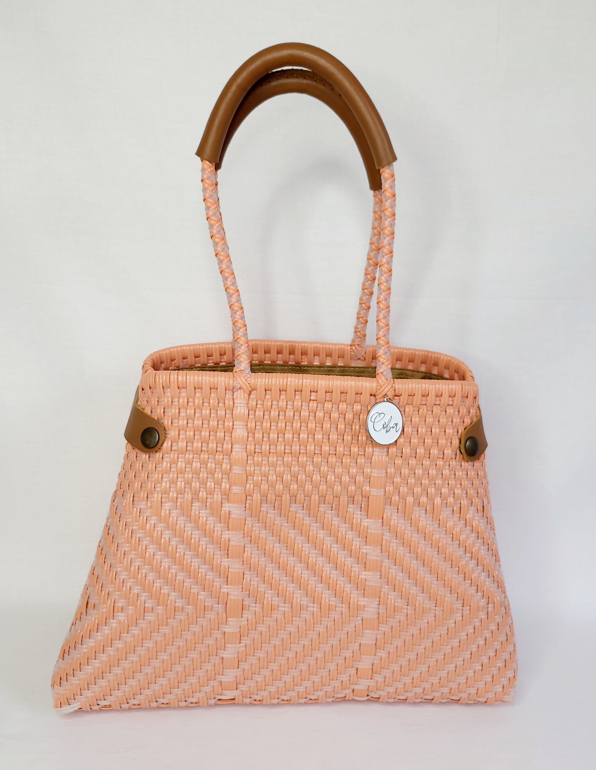 Coba by DKH's bold colored bags are inspired by Mexican culture; its people, and its places. Each tote is assembled by hand by our skilled team of artisans using recycled plastics. No two bags are exactly alike, making each one a work of art!