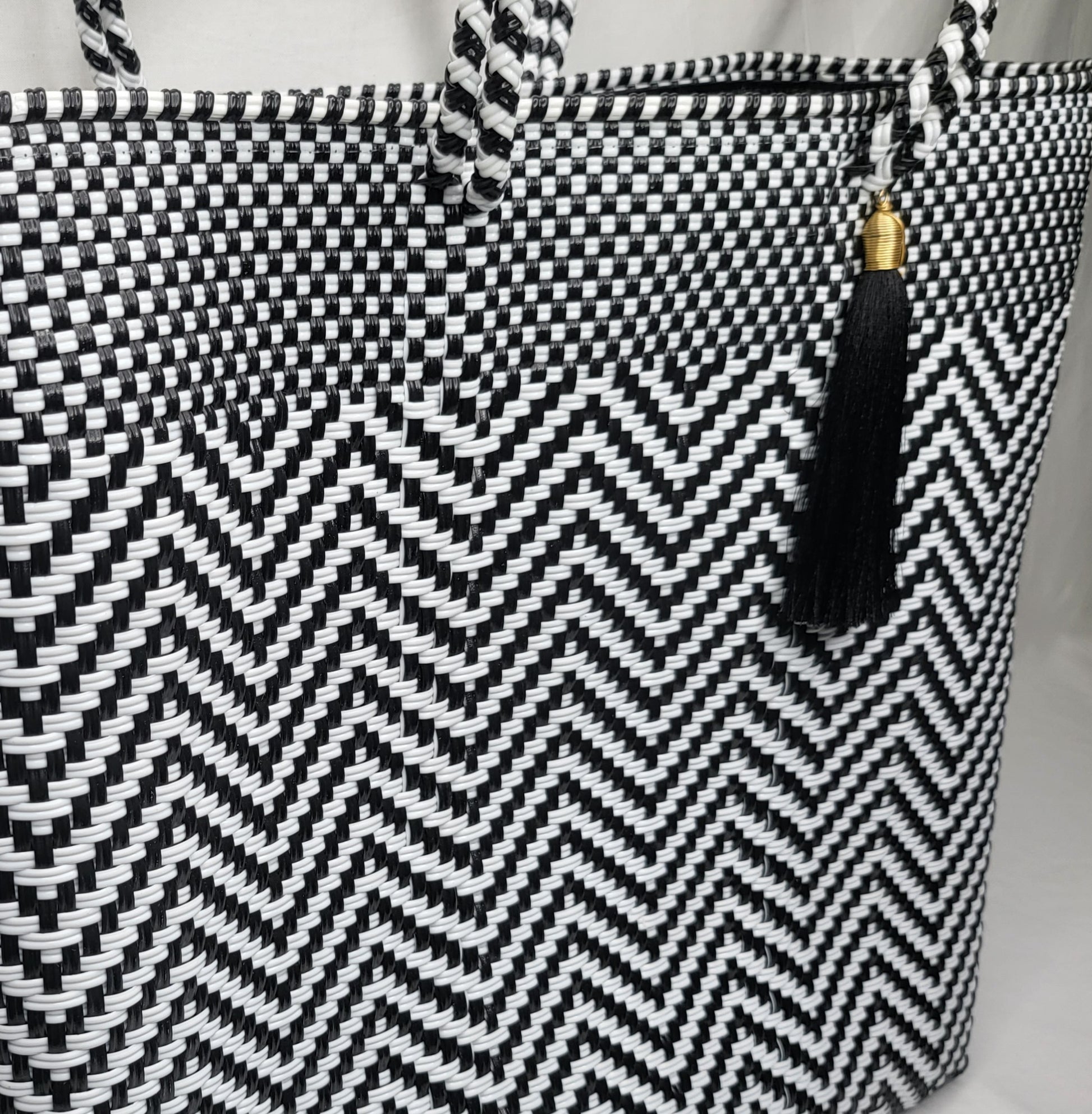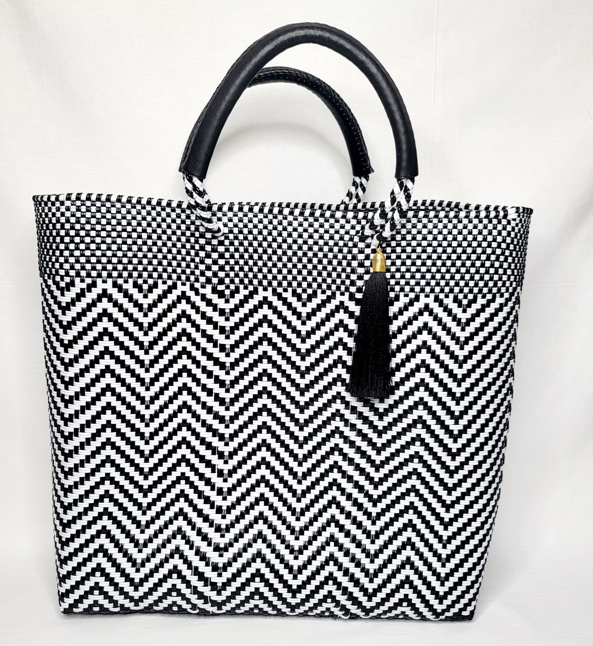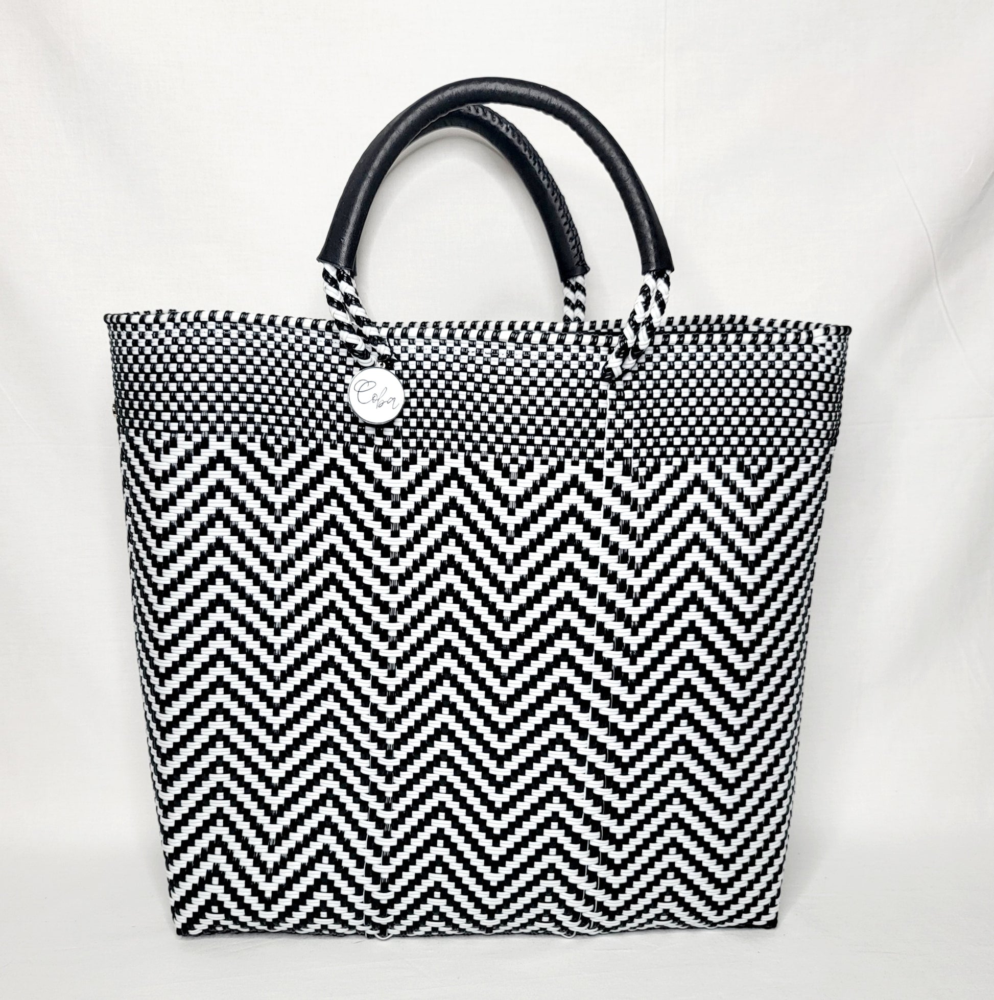 Lola Large Bag - Black & White Chevron