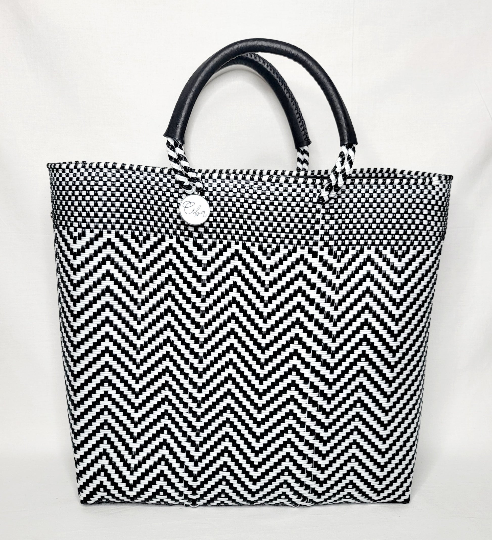 Coba by DKH's bold colored bags are inspired by Mexican culture; its people, and its places. Each tote is assembled by hand by our skilled team of artisans using recycled plastics. No two bags are exactly alike, making each one a work of art!